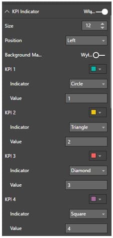 KPI Idicator Index jest to wybór grafiki, która może ale nie musi, pojawić się przy określonym poziomie KPI.