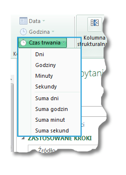 Następnym obszarem we wstążce Przekształć jest Kolumna daty i godziny.