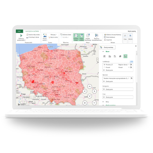 Jeżeli jesteś zaawansowanym użytkownikiem programu Excel, docenisz możliwość połączenia mapy z tabelą przestawną i fragmentatorami czy dodawania dodatkowych kontrolek formularza.