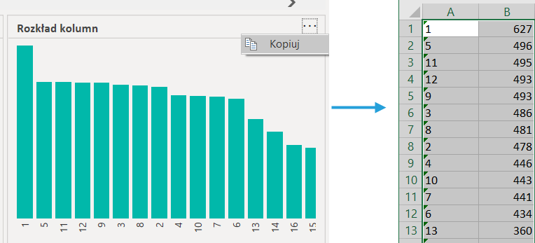 - kopiowanie dystrybucji w postaci tabeli do Excela