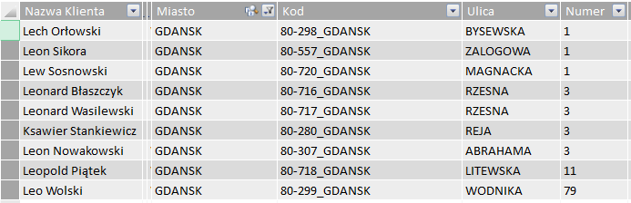 Tymczasem w naszej tabeli znajdują się dane ośmiu klientów:
