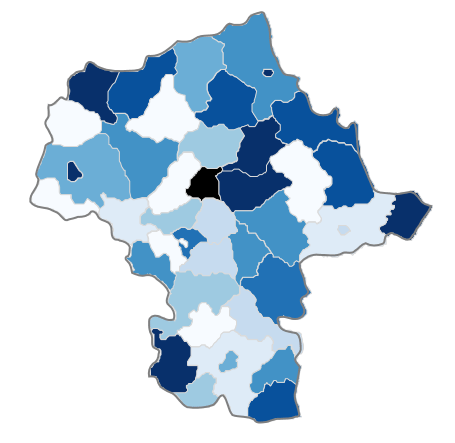 Po dwukrotnym kliknięciu w dowolny bąbelek przechodzimy do następnego poziomu szczegółowości, a powrót odbywa się przy pomocy małej ikony funkcji Uogólnij w prawym górnym rogu mapy. Ikona ta przypomina przycisk w górę znany ze starych wersji systemu operacyjnego Windows.