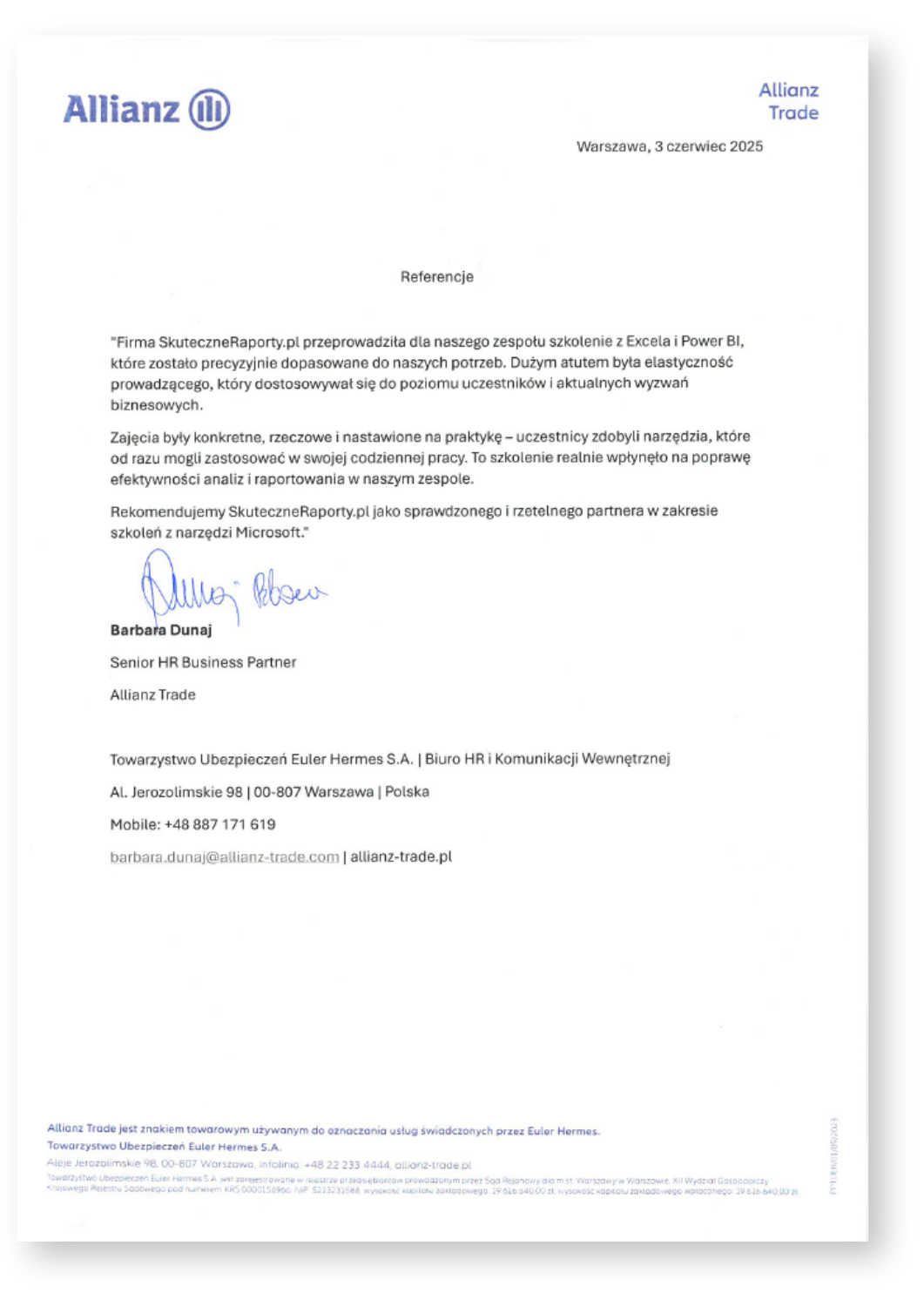 Barbara Dunaj Senior HR Business Partner Allianz Trade