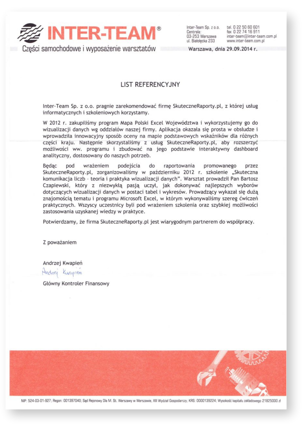 Andrzej Kwapień Główny Kontroler Finansowy, Inter-Team Sp. z o.o.