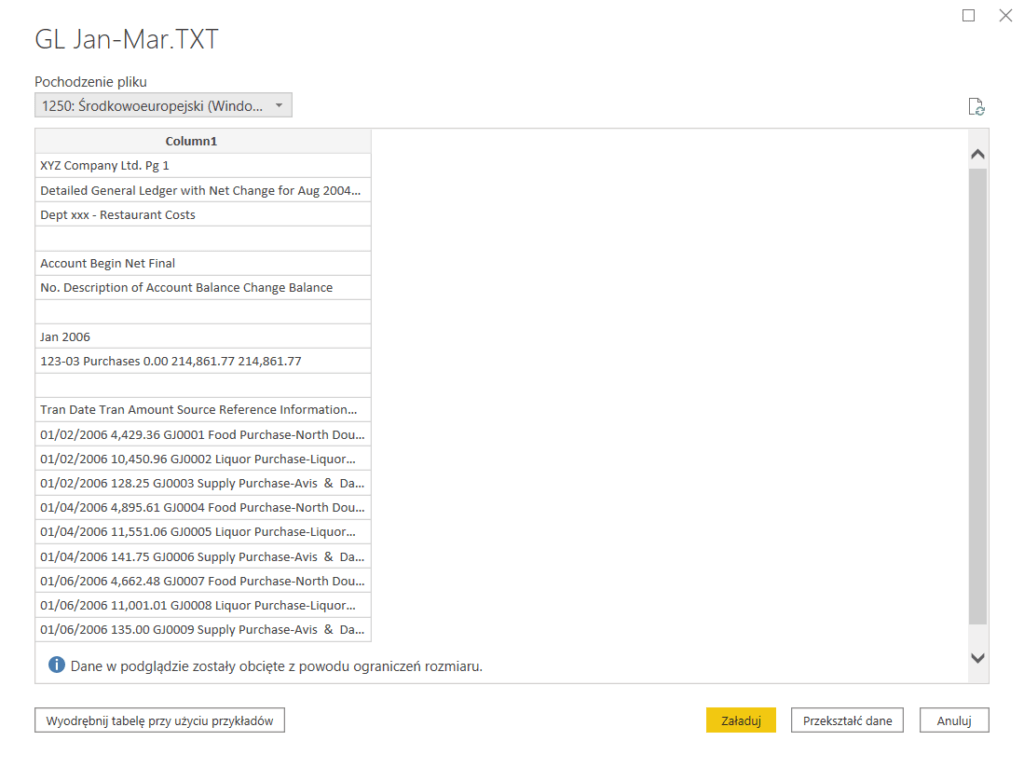 Niestety podgląd może zostać ograniczony, tak jak stało się u mnie na łamaniu stron. Nie ma się jednak co zrażać, dlatego że Power Query nagrywa wiele oddzielnych kroków, a nie jedną funkcję (czyli czarną skrzynkę, której zawartości nie będziemy mogli łatwo edytować).