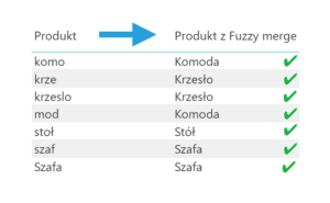 W ten sposób znajdziemy wszystkie kombinacje ID z Tabeli 1 z ID Tabeli 2 wg warunku „zawiera” (np. dla ID = 1).