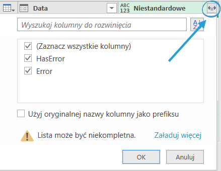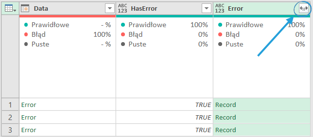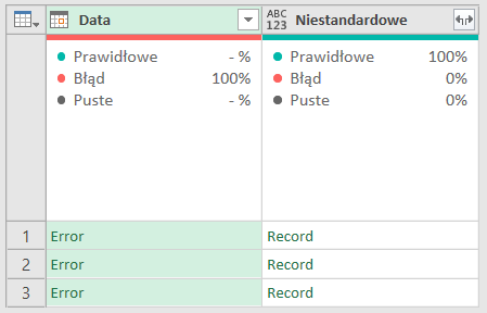 Pamiętajmy przy tym, że widok Power Query jest ograniczony do pierwszego 1000 rekordów, a przy dużej liczbie kolumn tylko do 200. Stąd nie zawsze błędy widać od razu w oknie podglądu.