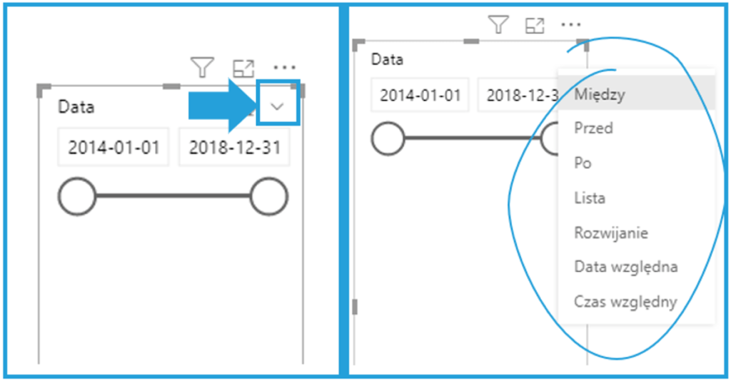 Kliknij w małą strzałkę tuż nad datą końcową. Pokażą się możliwe formy filtrowania.