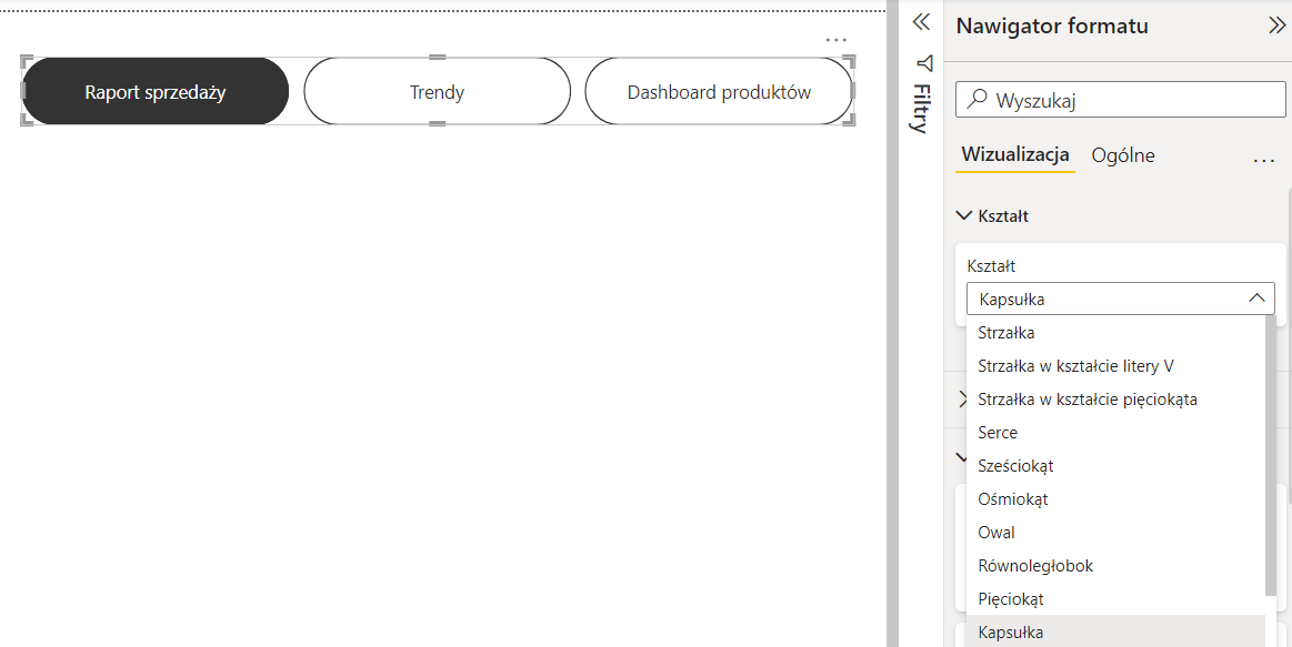 W jednej z ostatnich aktualizacji do Power BI trafiły 2 przydatne rzeczy: możliwość utworzenia jednym kliknięciem przycisku nawigatora oraz więcej opcji formatowania kształtów. Dzięki nim dużo szybciej utworzysz dodatkową nawigację między stronami (lub zakładkami), która będzie się automatycznie aktualizować.