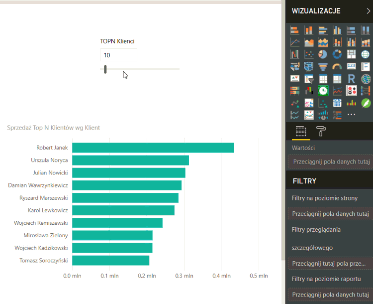 Parametr pola jest nowym, wbudowanym w Power BI Desktop rozwiązaniem, które pozwala użytkownikowi na zmianę wymiarów lub miar analizowanych w raportach. Dzięki parametrom użytkownik ma większą kontrolę nad poszczególnymi elementami wizualizacji