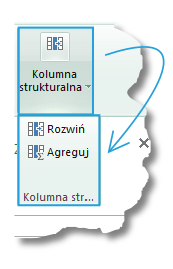 Ostatnią opcją dostępną we wstążce Przekształć jest Kolumna strukturalna. Po kliknięciu w tę opcję wyświetlą nam się dwie operacje jakie możemy wykonać na kolumnie strukturalnej: Rozwiń oraz Agreguj. Funkcji tych możemy użyć jedynie na kolumnach zawierających dane typu Table.