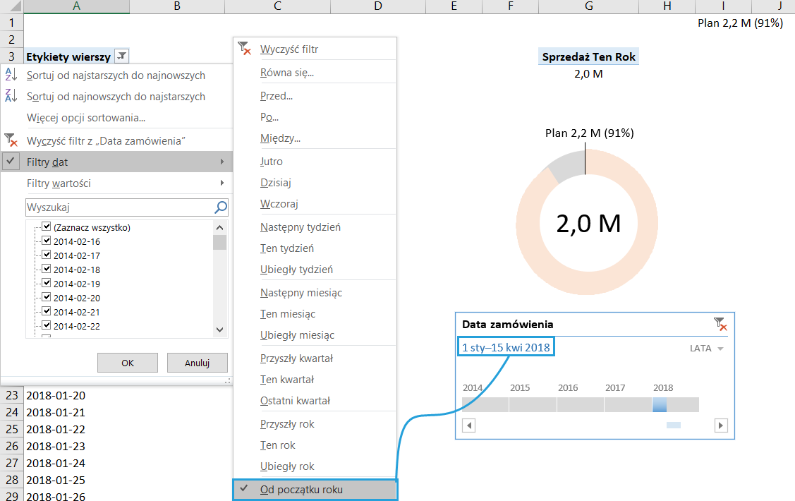 Program Excel pozwala domyślnie wstawić etykiety danych dla pojedynczych segmentów wykresu kolumnowego skumulowanego. Co, jeśli chcemy widzieć na etykietach zarówno wartości pośrednie, jak i sumę końcową (analogicznie