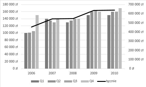 Wartość minimalna i maksymalna na wykresie liniowym w Excelu