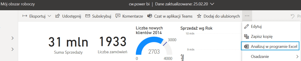 Co ciekawe, podobnie zachowuje się od teraz operacja Analizuj w programie Excel, dostępna w usłudze Power BI Online.