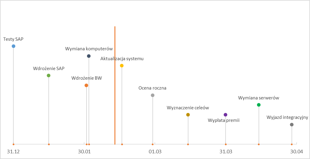 Zmieńmy formatowanie linii DZIŚ na kolor pomarańczowy.