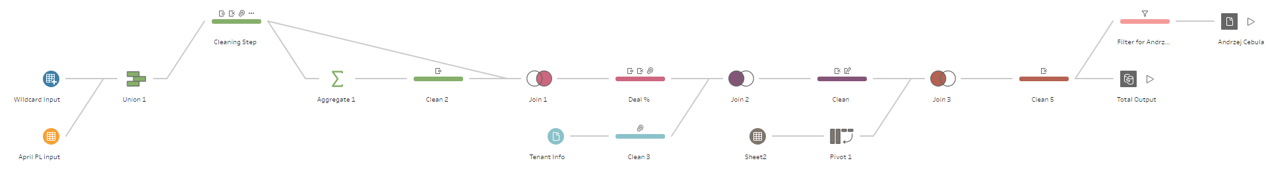 Drugą część stanowiło porównanie Power Query z Tableau Prep – analogicznym narzędziem ETL od Tableau. Prezentacji Tableau Prep podjął się Michał Mokwiński, prowadzący warszawską grupę Tableau User Group. Michał pokazał kilka ciekawych funkcji realizowanych w Prep metodą drag & drop: