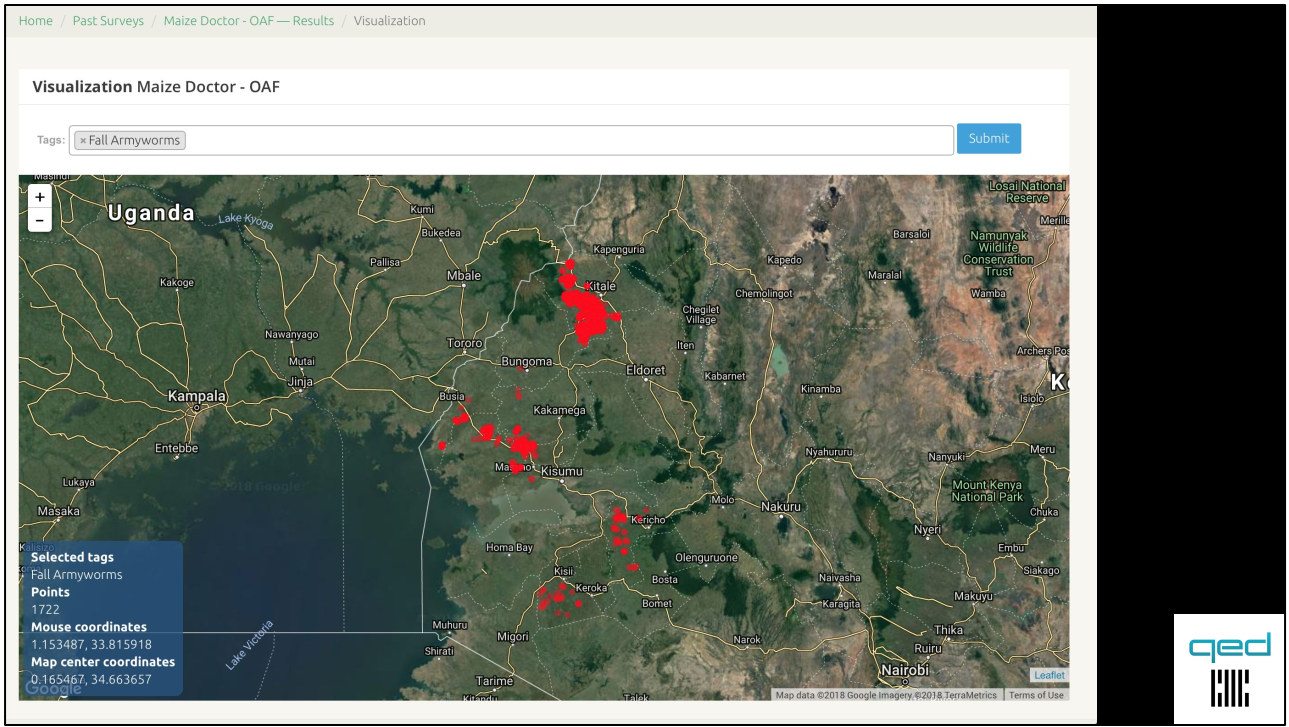 W pierwszej części spotkania Michał Łazowik, Full Stack Developer z QED, zaprezentował przykłady wykorzystania wizualizacji danych w projektach prowadzonych przez fundacje humanitarne w krajach trzeciego świata. Jak dowodził Michał, poprawa wydajności rolnictwa w krajach Afryki subsaharyjskiej czy Azji Wschodniej nie jest możliwa bez zbierania i przetwarzania dużej ilości danych, także z wykorzystaniem uczenia maszynowego. Jednak dopiero ich odpowiednia wizualizacja, m.in. na mapach, pozwala rozwiązywać realne problemy i szybciej reagować na zagrożenia – w przypadku upraw są to np. działania szkodników.